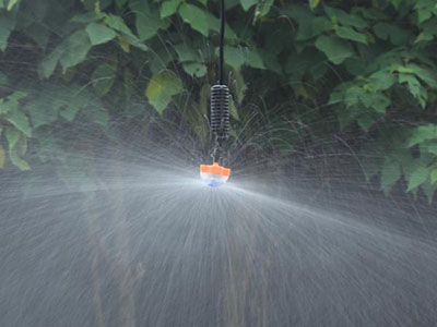 微噴是利用折射式,施轉式成輻射式微型噴頭將水噴灑到作物枝葉等區(qū)域的灌水形式。微噴的工作壓力低,流量小,既可以增加土壤水分,又能提高空氣濕度,起到調節(jié)局部小氣候的功效,應用面十分廣泛。另外,還可以借助部分微噴頭的超強霧化功能,用于扦插育苗、飼養(yǎng)場降溫等場所。